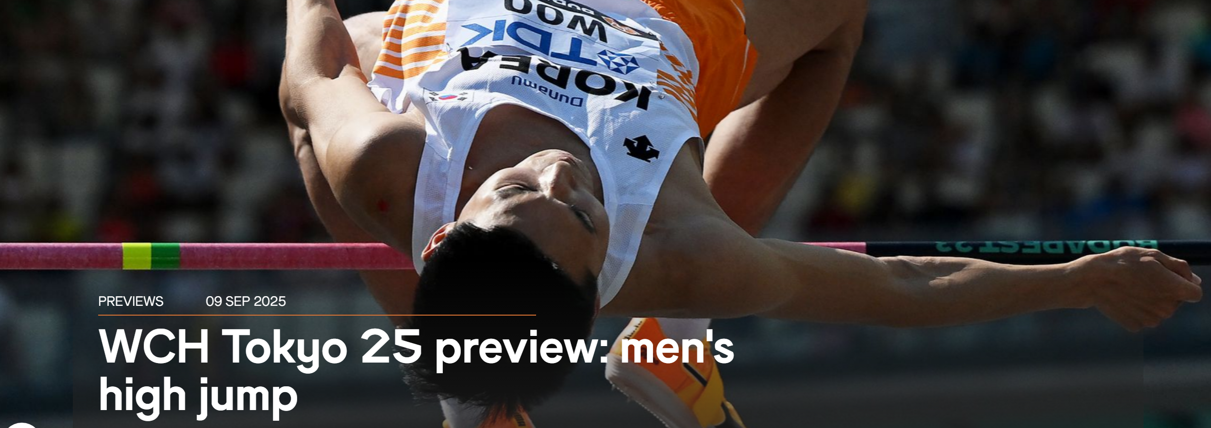 2025 도쿄 세계육상선수권대회가 긴 준비기간을 거쳐 오늘 9월 13일 일본 도쿄 국립경기장에서 공식 개막했습니다. 첫날부터 빅 게임 남자 100m 경기등 이 우리들의 관심을 집중시키고 있습니다. 특히, 대한민국 금메달 유력 후보인 남자 높이뛰기 우상혁 선수의 경기일정이 더더욱 관심의 중심에 있습니다. 이에, 오늘은 우상혁 선수의 경기일정을 중심으로 안내해 드리겠습니다. 2025 도쿄 세계육상선수권대회 우상혁 경기일정 우상혁 선수가 출전하는 남자 높이뛰기 경기의 일정은 다음과 같습니다.예선 : 9월 14일(일) PM 18:40결승 : 9월 16일(화) PM 20:35>> 우상혁 선수의 예선 경기결과는 아래 페이지를 참조하세요. [긴급] 2025 도쿄 세계육상선수권대회 우상혁 예선 통과 : 결승진출 확정..