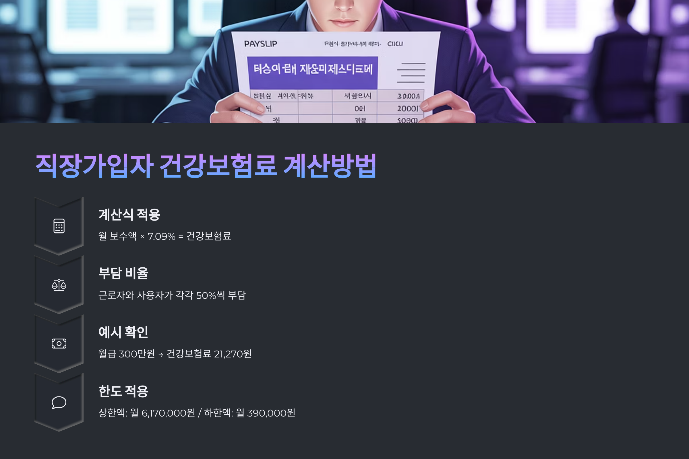 직장가입자는 급여에 따라 보험료가 자동 산정되며, 회사와 근로자가 절반씩 부담합니다.