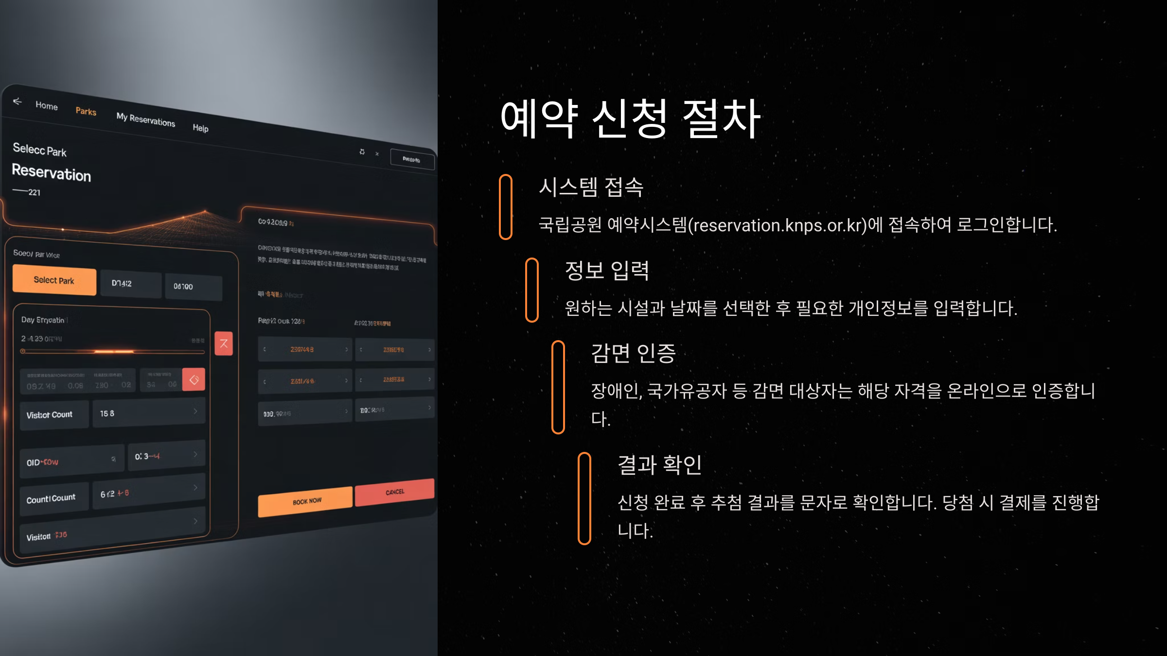 - 추첨 결과 확인: 문자 통지 또는 국립공원예약 통합 시스템에서 확인(국립공원 예약 시스템)