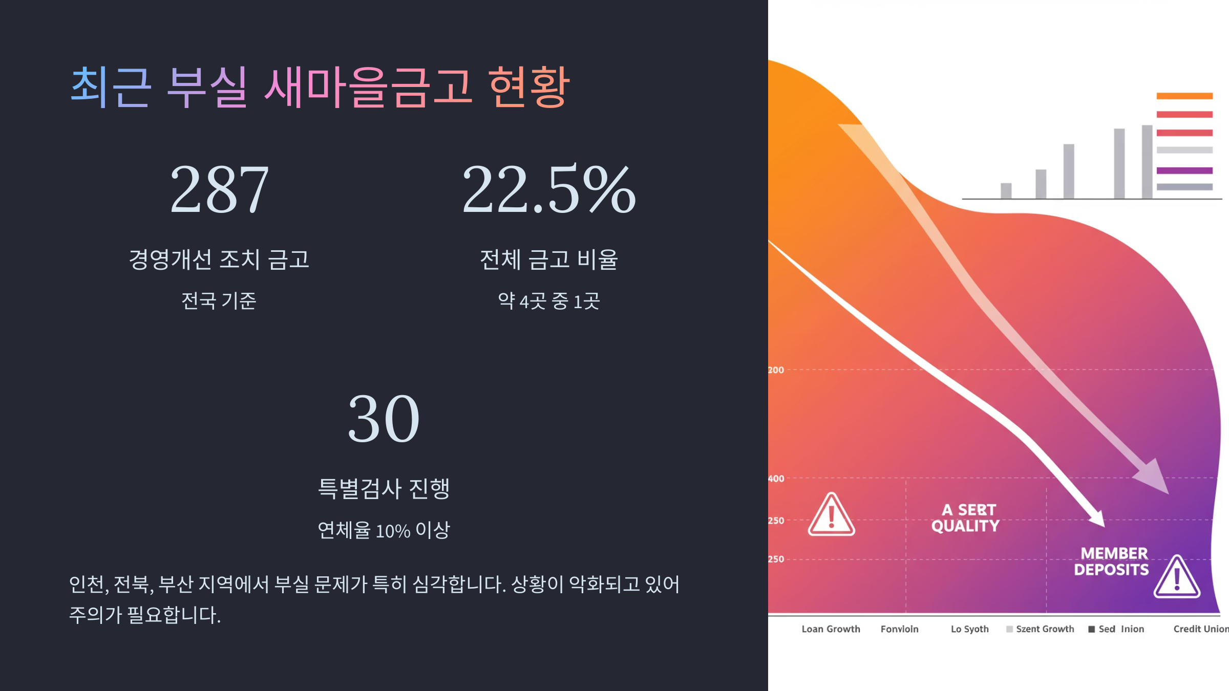 최근 새마을금고의 부동산 프로젝트파이낸싱(PF) 대출 부실로 인해 전국 287곳이 경영개선 조치를 받았습니다. 이는 전체 금고의 약 22.5%에 해당하며, 특히 인천, 전북, 부산 지역에서 부실이 심각한 상황입니다. 이러한 부실금고 명단을 확인하는 방법을 통해 예금자들은 자신의 자산을 안전하게 보호할 수 있습니다.