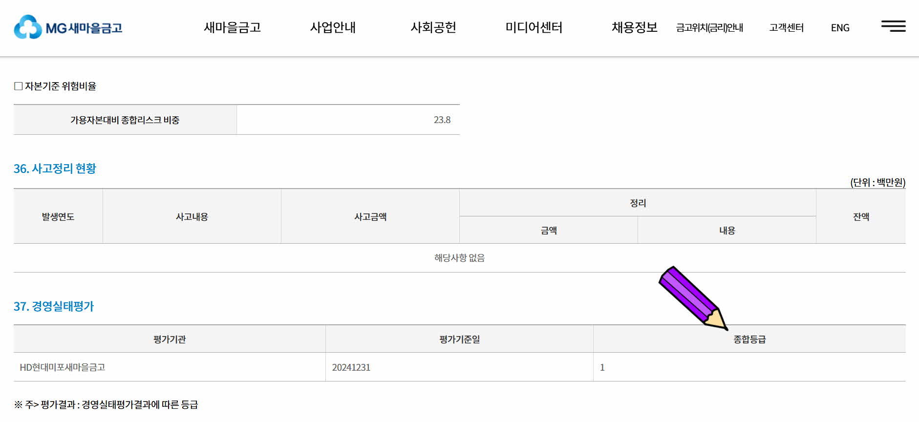 >> 또는 37.경영실태평가 종합등급 항목이 4~5등급 일 경우에는 후속 조치가 필요할 것입니다.