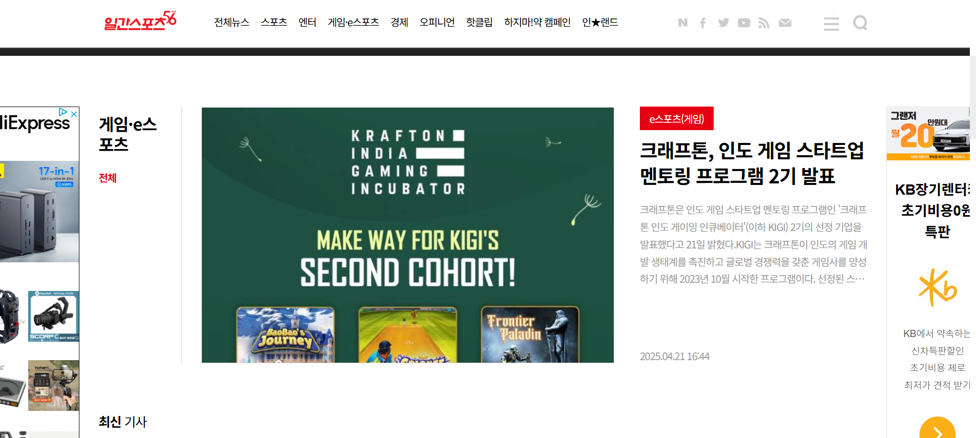 - **바로가기**: [일간스포츠](https://isplus.com/)