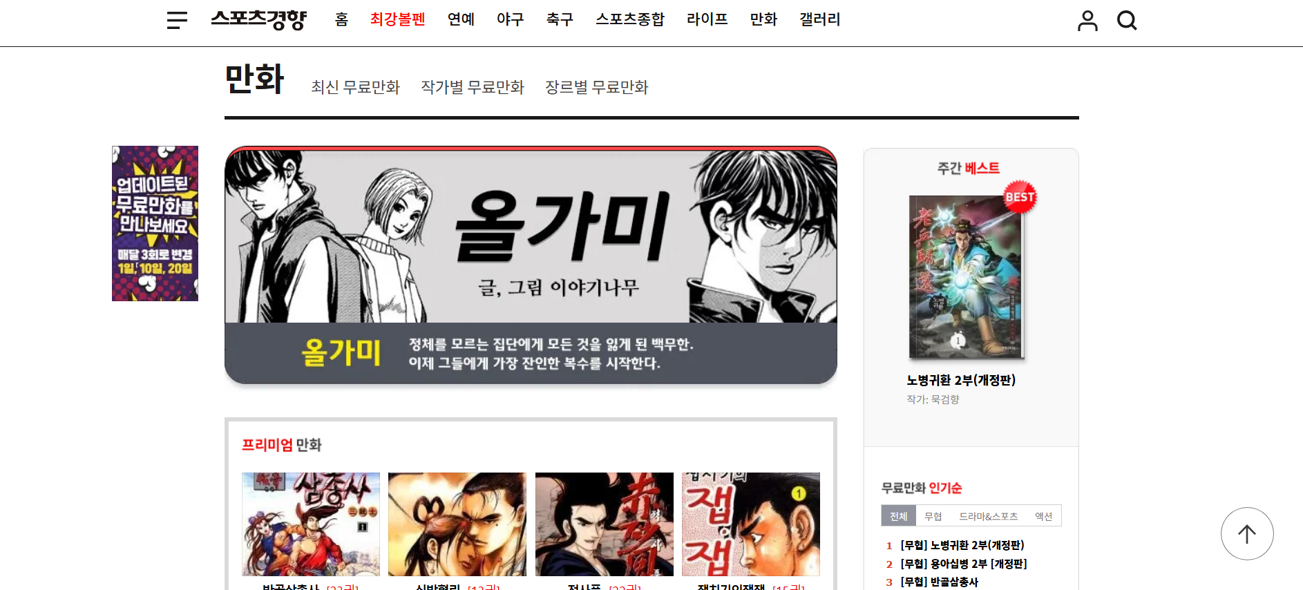 - 바로가기: [스포츠경향 무료만화](https://sports.khan.co.kr/comics/)