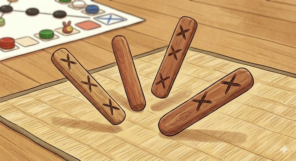 - 모 (말): 5칸 이동 (둥근 면이 4개 모두 위를 향함) - 한 번 더 던질 기회 획득