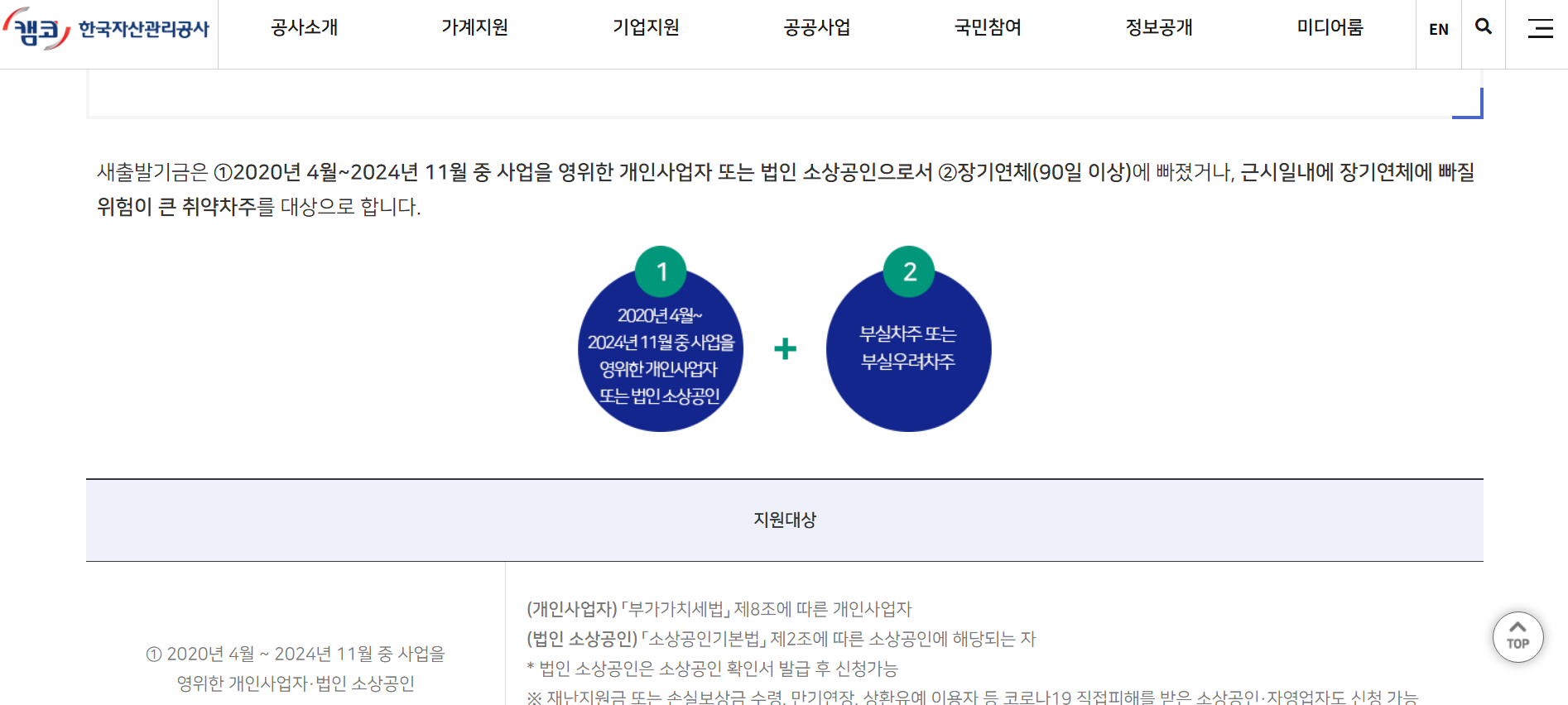 | 상환 기간 조정 | 최대 3년 거치 기간(신용대출 1년), 최장 20년 분할 상환(신용대출 10년) |