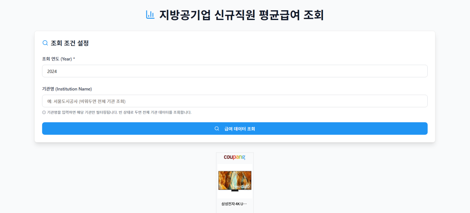 - 조회할 연도(예: 2024년)와 기관명 입력