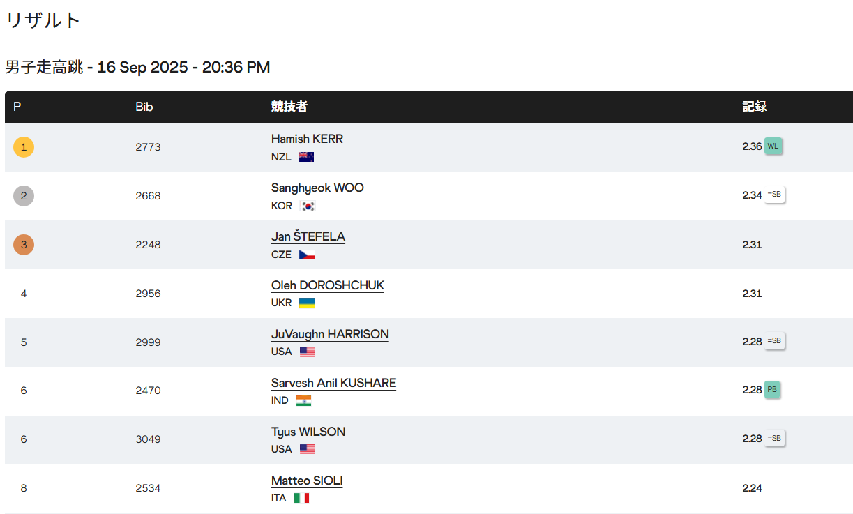 - 도쿄 세계선수권: 해미시 커 승리 (2m36 vs 2m34)