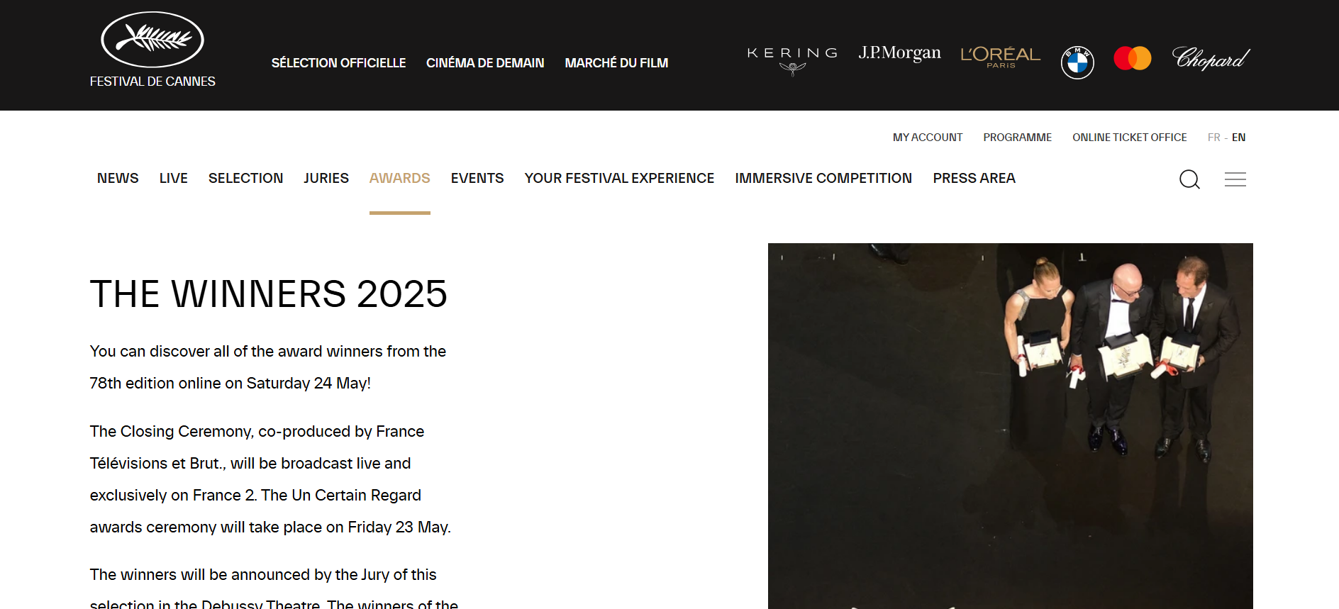 >> 2025년 칸영화제 황금종려상 수상작이 발표되었습니다.