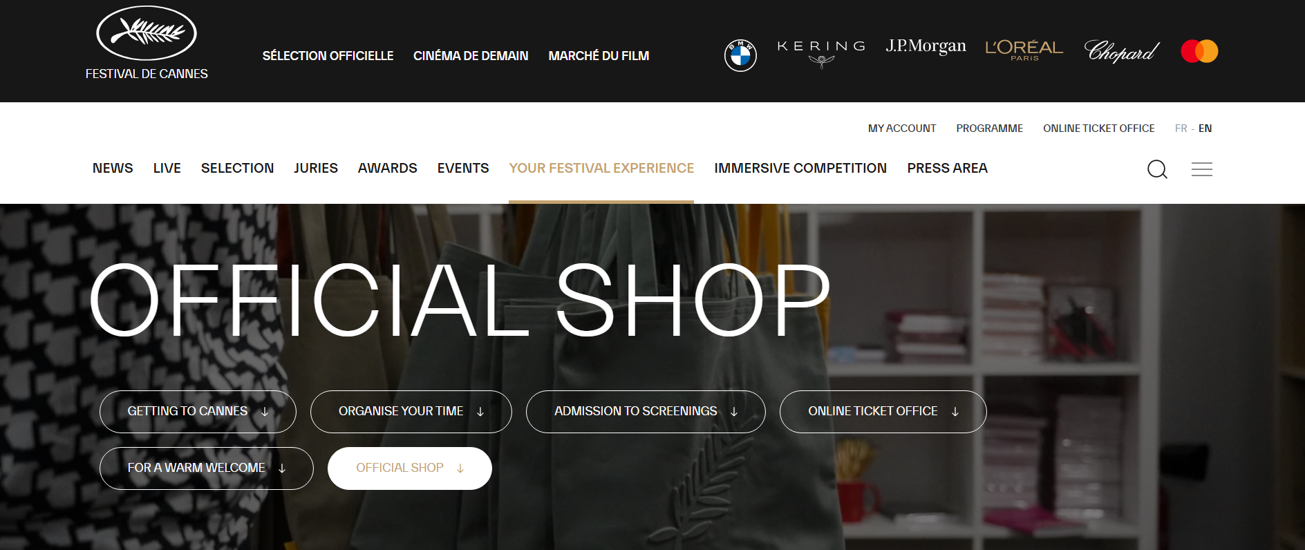 칸 영화제 한정 굿즈를 판매하는 공식 온라인 스토어입니다.