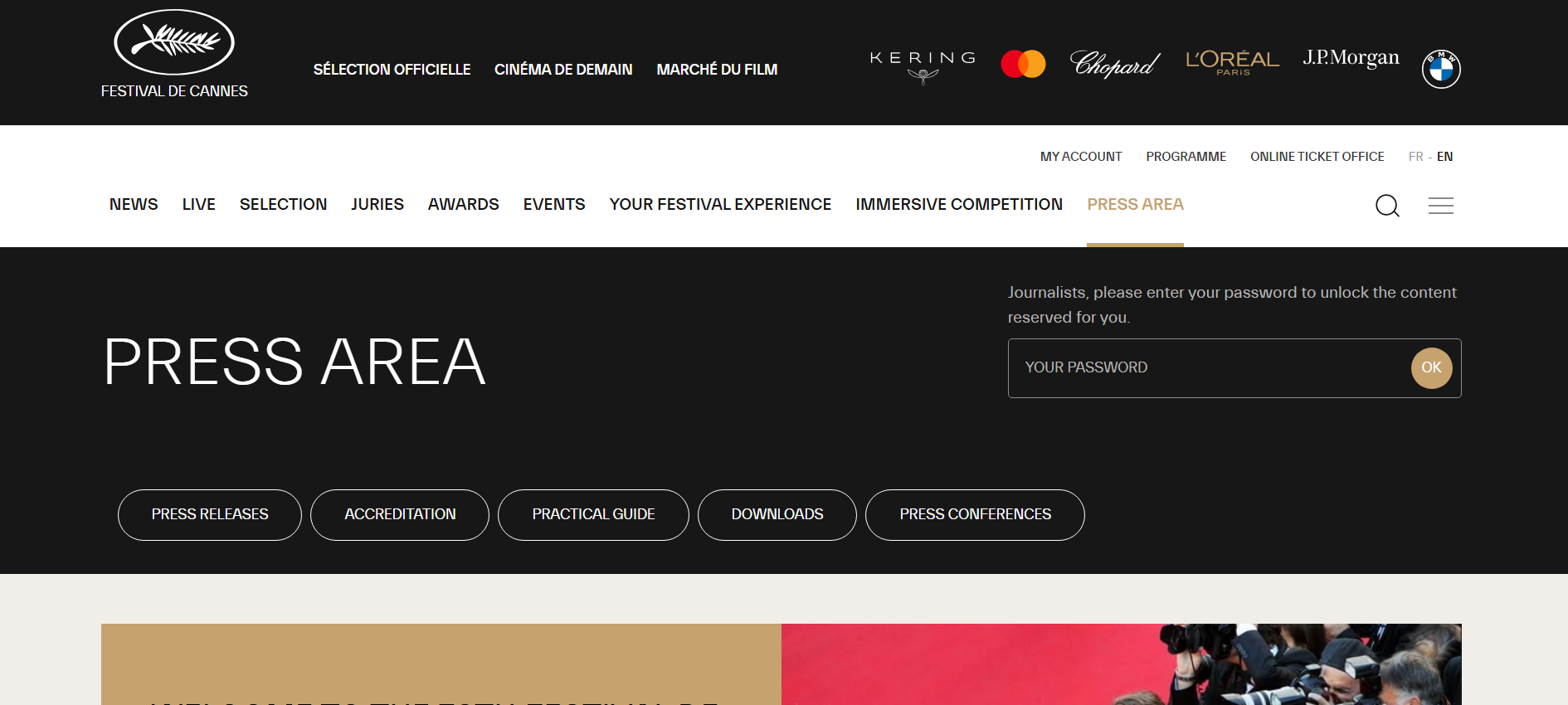 칸 영화제 공식 홈페이지의 프레스 에어리어는 언론인을 위한 필수 자료를 제공합니다.