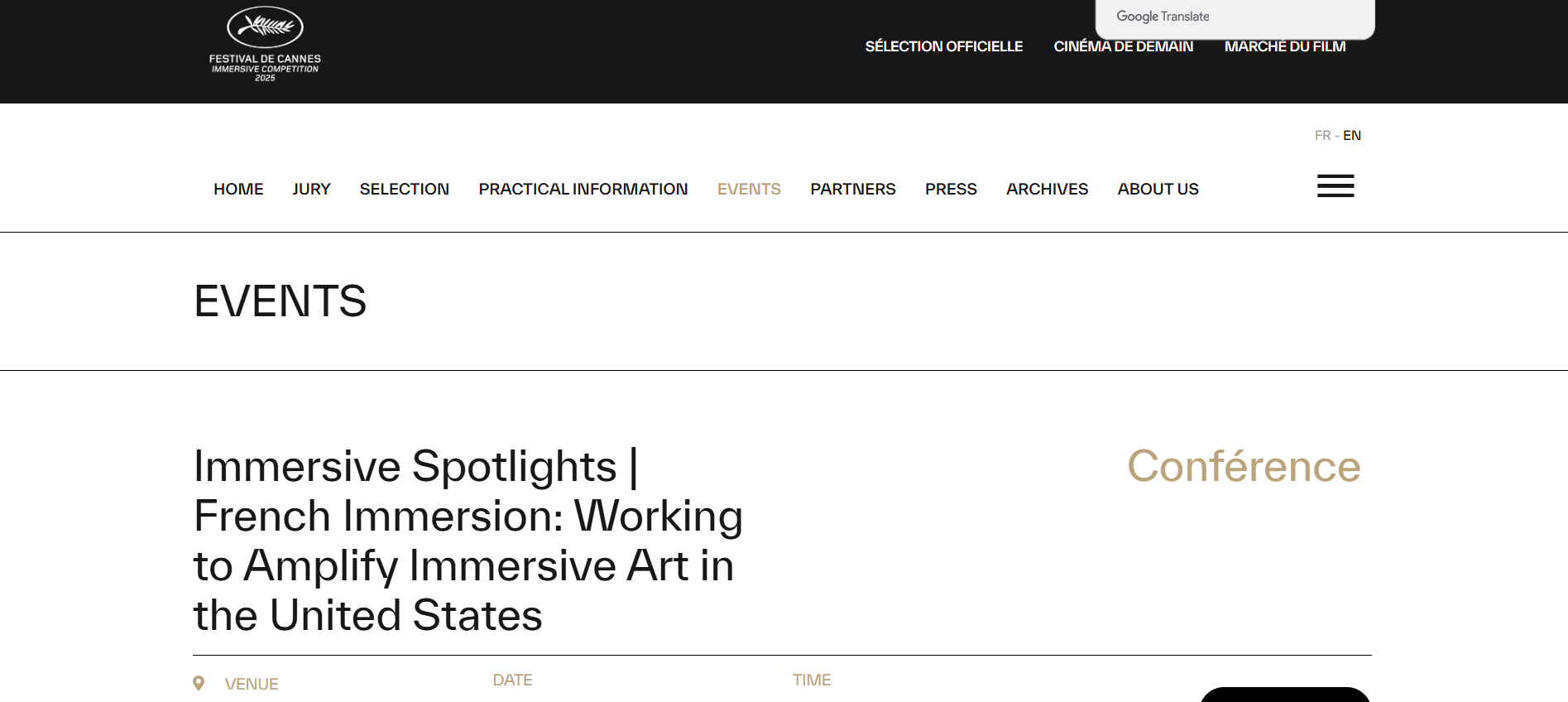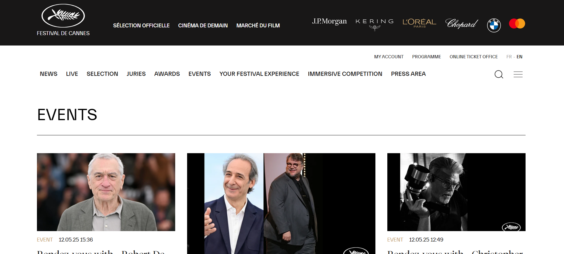 2025 칸 영화제 공식 홈페이지는 칸 영화제의 최신 정보와 프로그램을 가장 정확하게 전달해주는 채널입니다. 칸 영화제 공식 홈페이지에서는 심사위원단, 상영작, 시상식 정보뿐만 아니라 관람 가이드까지 모두 제공합니다. 칸 영화제 공식 홈페이지는 영화팬과 관계자 모두를 위한 필수 플랫폼입니다. 칸 영화제 공식 홈페이지를 통해 실시간으로 업데이트되는 콘텐츠를 만나보세요. 칸 영화제 공식 홈페이지에서 영화제의 생생한 현장을 그대로 느껴보시기 바랍니다.