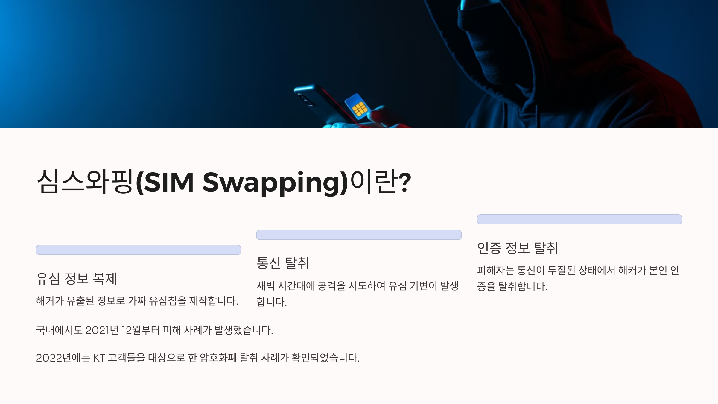 - 소액결제 피해: 해커가 복제된 유심을 이용해 소액결제를 진행하고 금전적 피해를 입힐 수 있습니다.