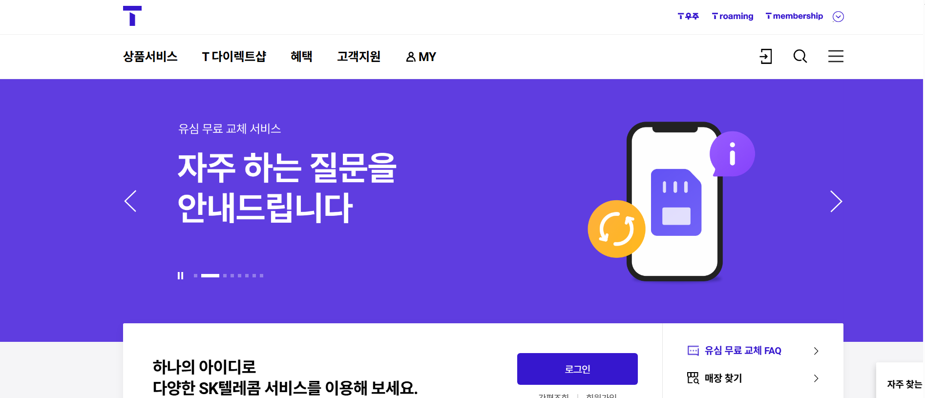 - T월드 웹사이트에 접속합니다.